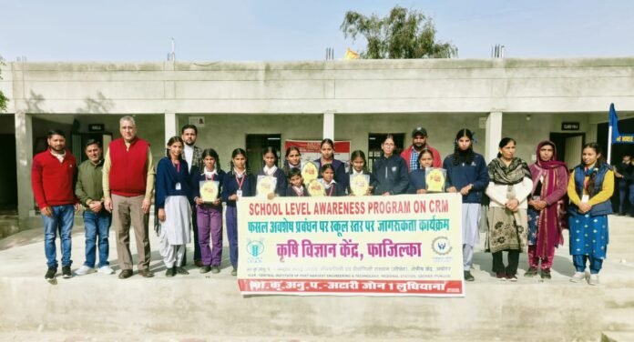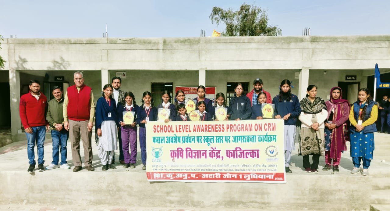 Punjab Desk : कृषि विज्ञान केंद्र, फाजिल्का (क्षेत्रीय केंद्र ICAR-CIPHET, अबोहर) द्वारा फाजिल्का जिले के केरा खेड़ा स्थित सरकारी सीनियर सेकेंडरी स्कूल में फसलों के अवशेष प्रबंधन (CRM) पर एक स्कूल-स्तरीय जागरूकता कार्यक्रम का सफलतापूर्वक आयोजन किया गया। इस कार्यक्रम का उद्देश्य विद्यार्थियों में पराली जलाने, पर्यावरण संरक्षण तथा आधुनिक कृषि प्रबंधन तकनीकों के प्रति जागरूकता बढ़ाना था।