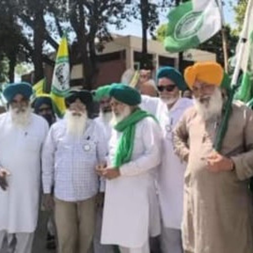 किसान के घर के बाहर विरोध करते हुए किसान यूनियन।
