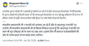 मुख्यमंत्री भगवंत मान ने सोशल मीडिया प्लेटफॉर्म X पर पोस्ट साझा करते हुए लिखा कि प्रधानमंत्री 1 फरवरी को जालंधर आ रहे हैं और आदमपुर एयरपोर्ट पर उतरेंगे। उन्होंने प्रधानमंत्री से विनम्र निवेदन किया कि इस एयरपोर्ट का नाम गुरु रविदास जी के नाम पर किया जाए। सीएम मान ने कहा कि यदि यह मांग पूरी होती है तो वह समस्त पंजाबवासियों की ओर से प्रधानमंत्री का हृदय से आभार प्रकट करेंगे।