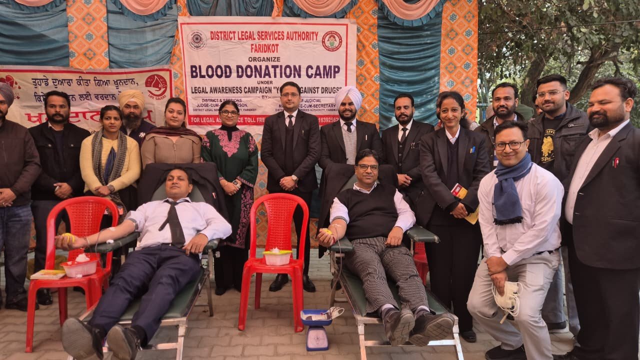 Punjab Desk : ज़िला एवं सत्र न्यायाधीश फ़रीदकोट के मार्गदर्शन में तथा माननीय सदस्य सचिव, पंजाब राज्य कानूनी सेवा प्राधिकरण, एस.ए.एस. नगर के आदेशों की पालना करते हुए सब-डिवीजन कोर्ट कॉम्प्लेक्स जैतो में एक रक्तदान शिविर लगाया गया। यह शिविर श्री संजीव जोशी, ज़िला एवं सत्र न्यायाधीश एवं चेयरमैन, ज़िला कानूनी सेवा प्राधिकरण फ़रीदकोट की अगुवाई में, सचिव ज़िला कानूनी सेवा प्राधिकरण फ़रीदकोट द्वारा आयोजित किया गया।