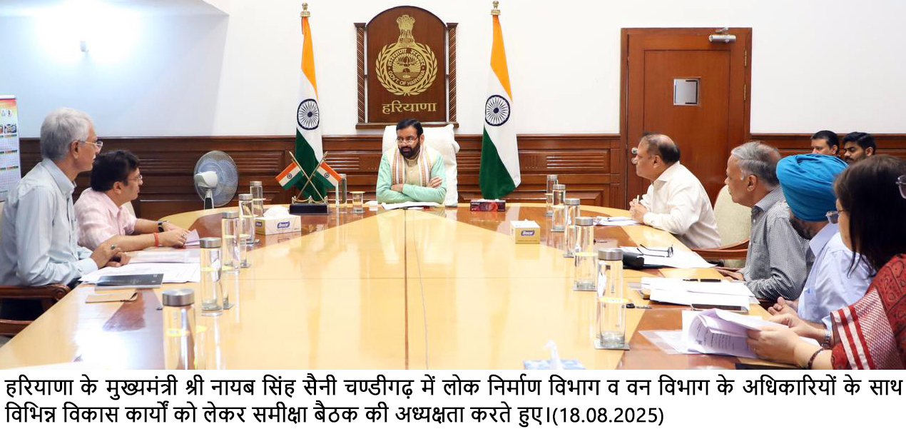 मुख्यमंत्री श्री नायब सिंह सैनी आज यहाँ लोक निर्माण विभाग और वन विभाग के अधिकारियों के साथ विभिन्न कार्यों को लेकर समीक्षा बैठक की अध्यक्षता कर रहे थे। उन्होंने वन विभाग से एनओसी लेकर शीघ्र इन गांवों में सड़कों के निर्माण कार्य शुरू करने के निर्देश दिए।