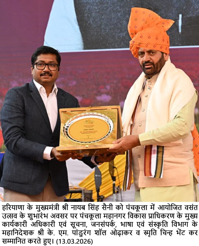 वसंत उत्सव जैसे आयोजनों से स्थानीय कलाकारों और हस्तशिल्पों को मंच मिलता है और पर्यटन और स्थानीय अर्थव्यवस्था को नई गति मिलती है- श्री के. मकरंद पांडुरंग इससे पूर्व अपने स्वागतीय भाषण में पंचकूला महानगर विकास प्राधिकरण (पीएमडीए) के मुख्य कार्यकारी अधिकारी श्री के. मकरंद पांडुरंग ने उपस्थित सभी को वसंत उत्सव की बधाई एवं शुभकामनाएं दी। उन्होंने कहा कि जिस तरह वसंत में पुरानी पत्तियां गिरती है और नए अंकुर फूटते है उसी तरह मुख्यमंत्री श्री नायब सिंह सैनी के नेतृत्व में हरियाणा आधुनिकता और प्रगति की नई राह पर आगे बढ़ रहा है। उन्होंने कहा कि आज का यह वातावरण हमें याद दिलाता है कि विकास तभी सार्थक है जब उसमें हमारी संस्कृति और आपसी भाईचारे के रंग घुले हो। ऐसे आयोजनों से जहां एक ओर हमारे स्थानीय कलाकारों और हस्तशिल्पों को मंच मिलता है वहीं दूसरी ओर यह पर्यटन और स्थानीय अर्थव्यवस्था को भी नई गति प्रदान करता है।
