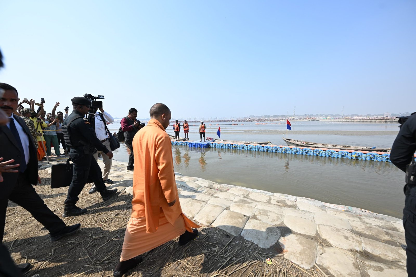 National Desk: उत्तर प्रदेश के मुख्यमंत्री योगी आदित्यनाथ शनिवार को तीर्थराज प्रयाग पहुंचे। यहां उन्होंने सबसे पहले संगम में आस्था की डुबकी लगाई और गंगा स्नान के दौरान तीन बार स्नान कर भगवती भागीरथी से प्रदेश व देश के कल्याण की प्रार्थना की। मुख्यमंत्री ने कामना की कि सभी श्रद्धालुओं के मनोरथ पूर्ण हों तथा राष्ट्र और समाज में सद्भाव व समृद्धि बनी रहे।