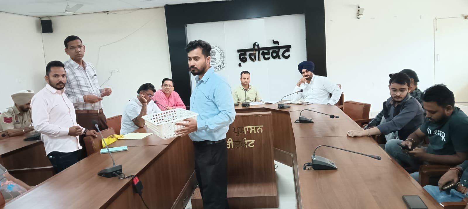 Punjab Desk: एस.डी.एम. फरीदकोट मेजर डॉ. वरुण कुमार ने माननीय पंजाब और हरियाणा हाईकोर्ट के निर्देशों के अनुसार आज स्थानीय अशोका चक्कर मीटिंग हॉल में दीपावली पर्व के अवसर पर जिले के विभिन्न शहरों/कस्बों में पटाखे बेचने/भंडारण के लिए 24 अस्थायी लाइसेंस जारी करने हेतु ड्रॉ निकाले। ये ड्रॉ उम्मीदवारों की उपस्थिति में निष्पक्ष, स्वतंत्र और पारदर्शी तरीके से निकाले गए। इस अवसर पर जी.ए.एस. गुरकिरनदीप सिंह भी मौजूद थे।