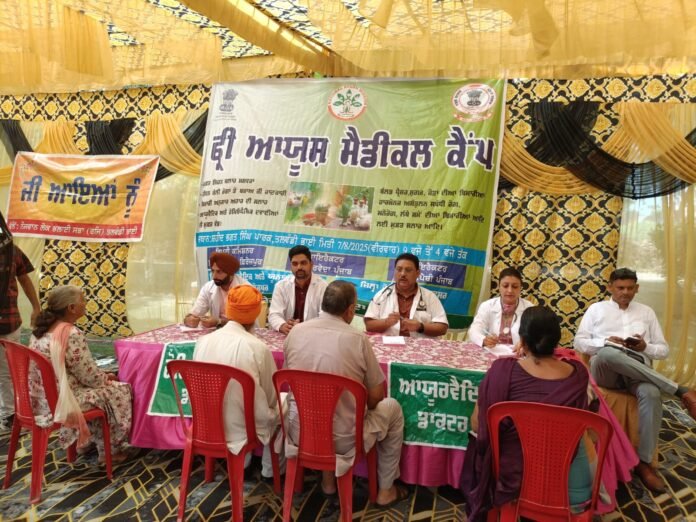 Punjab Desk: Under the guidance of Deputy Commissioner Ferozepur, Ms. Deepshikha Sharma, and the leadership of Dr. Ravi Kumar Dumra (Director of Ayurveda), Dr. Rupinderdeep Kaur Gill (District Ayurvedic-Unani Officer), and Dr. Rahman (District Homeopathic Officer), the fifth AYUSH medical camp was organized at Shaheed Bhagat Singh Park, Talwandi Bhai.