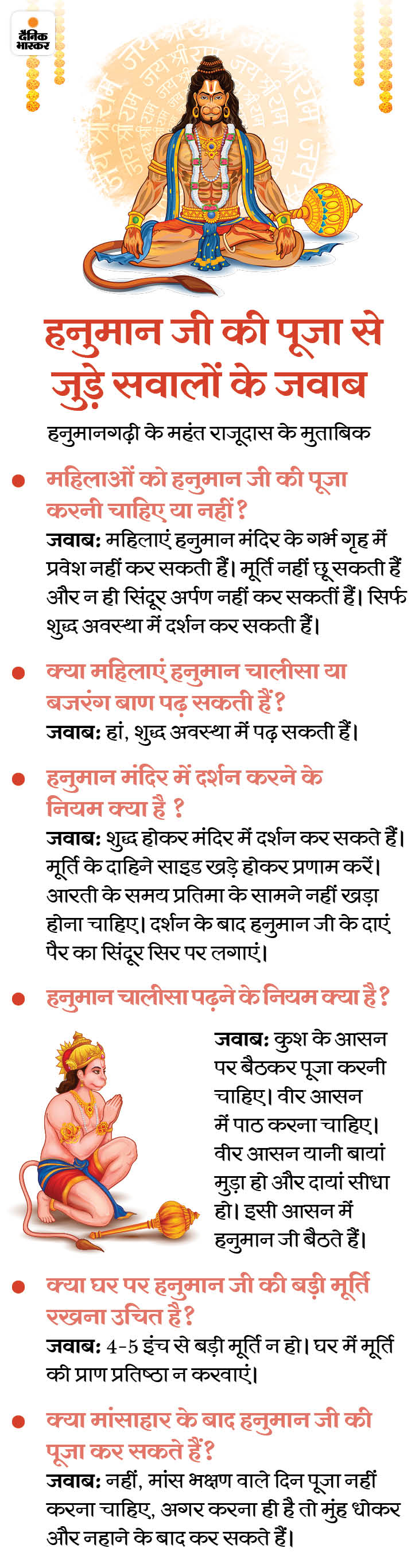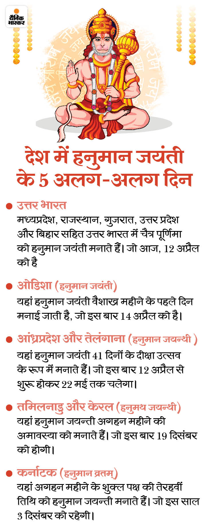 आज हनुमान जयंती है। हनुमानजी ब्रह्मचारी के रूप में पूजे जाते हैं इसलिए ग्रंथों में बताए विधान के अनुसार इनकी पूजा सुबह 4 से रात 9 बजे तक कर सकते हैं। अगस्त्य संहिता और वायु पुराण में लिखा है कि हनुमानजी की उम्र एक कल्प यानी 4.32 अरब साल है। इसी कारण उन्हें अमर माना जाता है।