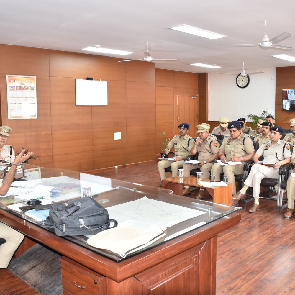 झज्जर में बैठक लेते हुए डीसीपी लोगेश कुमार।