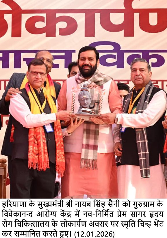 Haryana Desk हरियाणा के मुख्यमंत्री श्री नायब सिंह सैनी ने कहा कि नैतिकता, पारदर्शिता और जनकल्याण को सर्वोपरि रखते हुए राज्य के स्वास्थ्य लक्ष्यों में सहभागी बनने वाली सभी जिम्मेदार संस्थाओं का हरियाणा में स्वागत है। सरकारी स्वास्थ्य सेवाओं के मजबूत ढांचे के साथ-साथ निजी क्षेत्र की जांच एवं चिकित्सा सेवाओं की भूमिका भी नागरिकों के लिए अत्यंत महत्वपूर्ण है। मुख्यमंत्री सोमवार को गुरुग्राम में स्वामी विवेकानंद जी की जयंती पर सेक्टर 12ए स्थित भारत विकास परिषद महाराणा प्रताप न्यास गुरुग्राम द्वारा संचालित ‘विवेकानंद आरोग्य केंद्र’ में प्रेम सागर हृदय रोग चिकित्सालय के लोकार्पण समारोह को बतौर मुख्यातिथि संबोधित कर रहे थे। मुख्यमंत्री ने कार्यक्रम में स्वामी विवेकानन्द जी की 163वीं जयंती पर उन्हें नमन करते हुए प्रदेशवासियों को लोहड़ी, मकर संक्रांति तथा पोंगल पर्व की शुभकामनाएं भी दी।