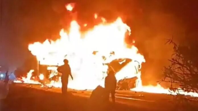 National Desk: कर्नाटक के चित्रदुर्ग जिले में बृहस्पतिवार तड़के एक भीषण सड़क हादसा हुआ, जिसमें 9 लोगों की मौ/त हो गई। तेज रफ्तार ट्रक ने गोकर्ण जा रही लग्जरी स्लीपर बस से टक्कर मारी, जिससे बस में आग लग गई।