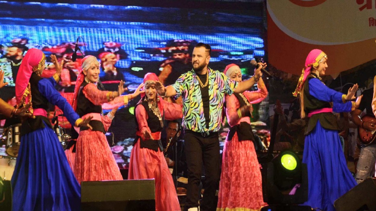 Himachal Desk: जुन्गा (शिमला)। जुन्गा के ग्लाइड इन में चल रहे फ्लाइंग फेस्टिवल और हॉस्पिटैलिटी एक्सपो 2025 के दौरान प्रसिद्ध लोकगायक कुलदीप शर्मा ने अपनी शानदार प्रस्तुतियों से माहौल को सुरमय बना दिया। उन्होंने “तेरा मेरा प्यार अड़िए” और “बचपनो रा नाटी” जैसे लोकप्रिय गीतों पर दर्शकों को झूमने पर मजबूर कर दिया।