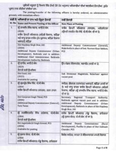 कुल 40 PCS अफसरों को विभिन्न जिलों और विभागों में नई जिम्मेदारियों के साथ पोस्टिंग दी गई है। इन अधिकारियों को जिलों में प्रशासनिक समन्वय, विकास कार्यों के क्रियान्वयन और सरकारी योजनाओं के प्रभावी संचालन का कार्य दिया गया है।तालिका स्वरूप में संपूर्ण सूची अभी तक आधिकारिक सरकारी आदेश के रूप में सार्वजनिक नहीं है, लेकिन जिन अफसरों की पोस्टिंग खुले तौर पर मिली है, वे ऊपर उल्लेखित हैं।