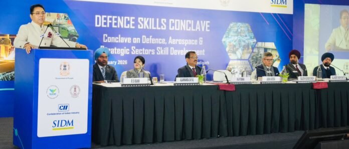 Punjab Desk: In a significant move to position Punjab at the forefront of India’s defence manufacturing by align the state capabilities with national defence imperatives, Chief Minister S. Bhagwant Singh Mann led Punjab Government, on Saturday, organised a high-level Defence Skills Conclave, focused on skill development for Defence, Aerospace & Strategic Sectors. The conclave, presided over by Punjab Employment Generation, Skill Development and Training Minister Mr. Aman Arora, served as a pivotal platform to architect a robust talent pipeline for the country’s self-reliance in defence manufacturing.