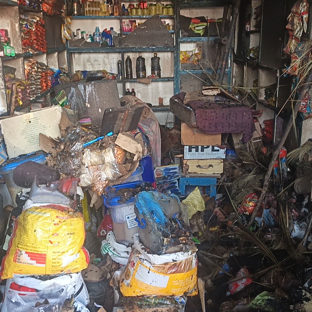 आग लगने के बाद दुकान में जला हुआ सामान।