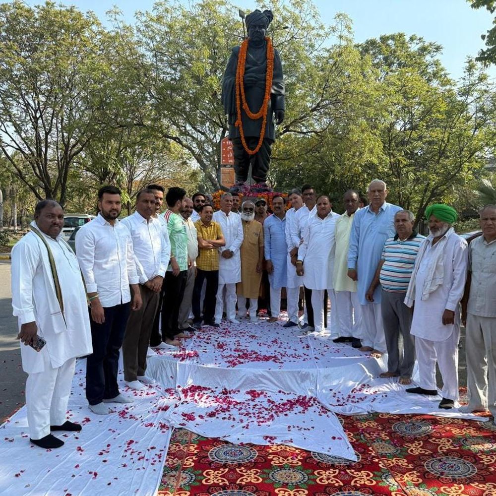 पंचकूला में देवीलाल की पुण्यतिथि पर श्रद्धा सुमन अर्पित करते जिला अध्यक्ष व अन्य।