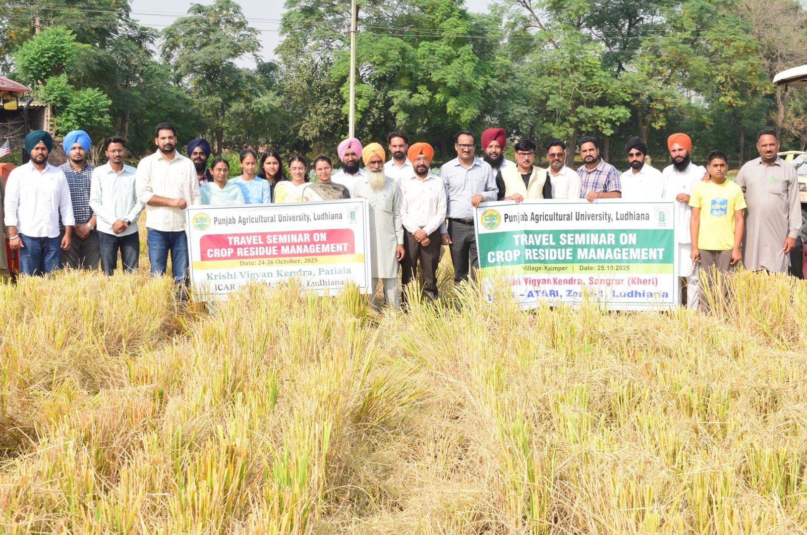 A one-day seminar and field exhibition on paddy stubble management was organized by Krishi Vigyan Kendra, Sangrur, Punjab Agricultural University, Ludhiana at Dirba’s adopted village Diwangarh Kemper. More than 60 farmers from Kemper village and nearby villages participated in the seminar.