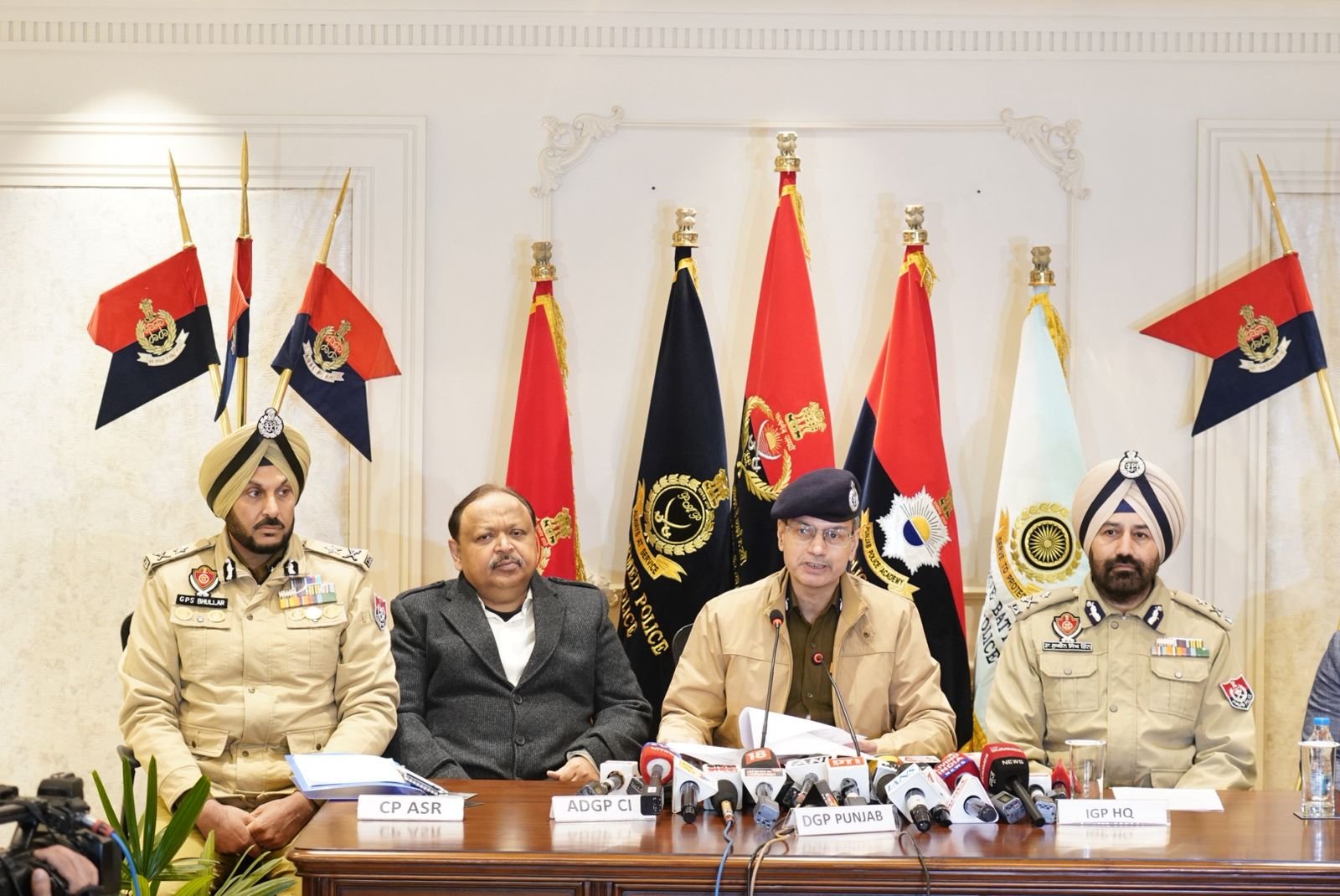 The DGP said another police team, with assistance from SSOC Mohali, arrested two more accused, both named Jobanpreet Singh, from Mohali. He said Harpreet Singh alias Happy was arrested from Valtoha, while Kulwinder Singh alias Kinda and Armandeep Singh were arrested from the Bhikhiwind area of Tarn Taran. He added that investigations revealed these five accused played a crucial role in the conspiracy by providing logistics, shelter, weapons and a motorcycle to the shooters.