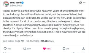 “राजपाल मेरी फिल्म का हिस्सा होंगे। यह चैरिटी नहीं, बल्कि सम्मान है। एक छोटा सा साइनिंग अमाउंट भविष्य के काम से एडजस्ट किया जा सकता है। जब हमारा कोई अपना मुश्किल में हो, तो इंडस्ट्री को उसे यह एहसास दिलाना चाहिए कि वह अकेला नहीं है।”