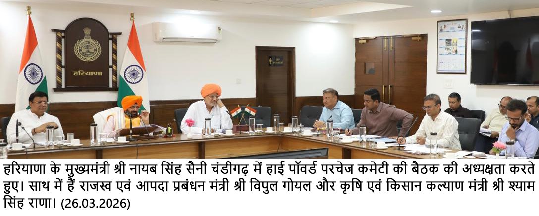 Haryana Desk: हरियाणा के मुख्यमंत्री श्री नायब सिंह सैनी की अध्यक्षता में आज यहां हुई हाई पावर्ड परचेज कमेटी की बैठक में रबी 2026-2027 सीजन के लिए भंडारण व्यवस्थाओं को सुदृढ़ बनाने के उद्देश्य से महत्वपूर्ण निर्णय लिए गए। बैठक में 550 करोड़ रुपये से जूट व अन्य बैगों की खरीद के दो एजेंडे थे, नेगोसिएशन करके 80 करोड़ रुपये बचाए गए। गेहूं के सुरक्षित भंडारण को सुनिश्चित करने के लिए जूट बैगों तथा अन्य बैगों की खरीद को मंजूरी प्रदान की गई।