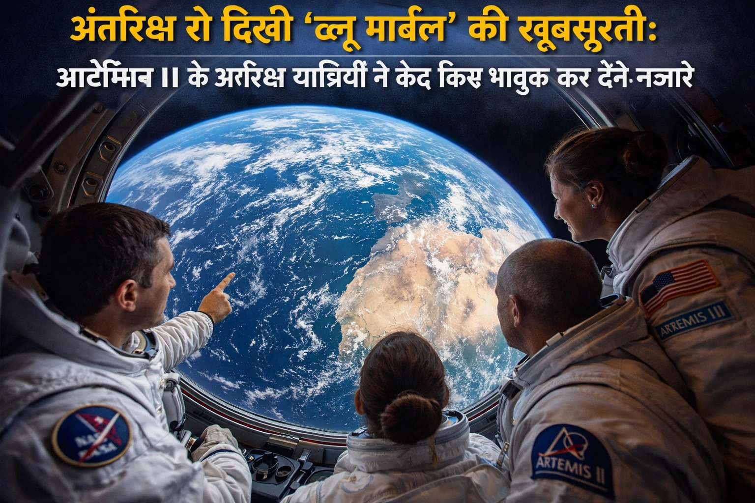 मिशन के कमांडर रीड वाइजमैन द्वारा ली गई तस्वीरों में पृथ्वी का घुमावदार किनारा कैप्सूल की खिड़की से झांकता नजर आता है। दूसरी तस्वीर में पूरी पृथ्वी दिखाई देती है—नीले महासागर, सफेद बादलों की परतें और हरे रंग की ऑरोरा (उत्तरी रोशनी) इसे और भी आकर्षक बनाते हैं।