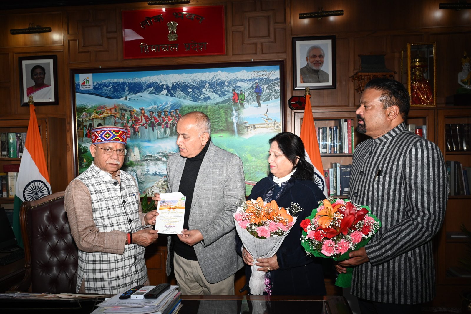 Himachal Desk: शिमला नगर निगम के महापौर सुरेन्द्र चौहान ने उप-महापौर उमा कौशल के साथ आज लोक भवन में राज्यपाल शिव प्रताप शुक्ला से भेंट की। इस अवसर पर महापौर ने राज्यपाल को 1 जनवरी, 2026 को शिमला विंटर कार्निवल के समापन समारोह में बतौर मुख्यातिथि शामिल होने के लिए आमंत्रित किया। शिमला नगर निगम द्वारा ऐतिहासिक रिज पर इस कार्निवल का आयोजन 24 दिसंबर से 1 जनवरी, 2026 तक किया जा रहा है।