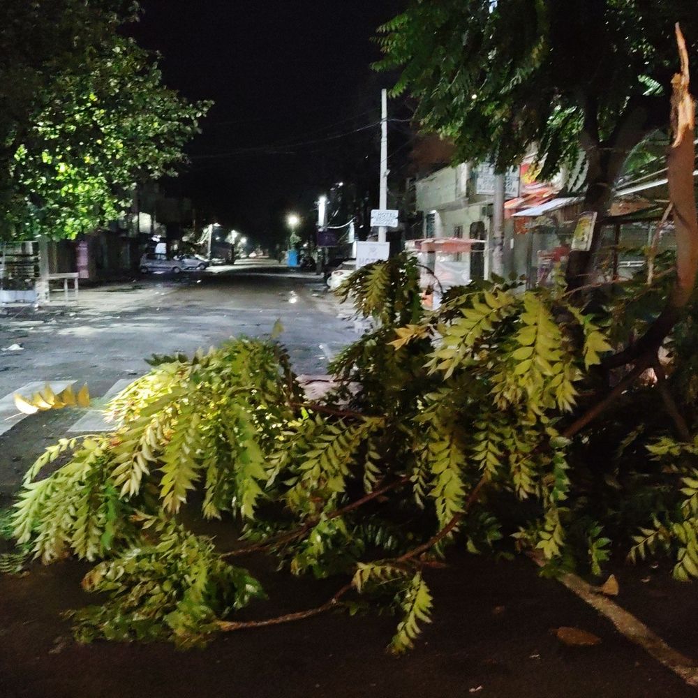 रात में आंधी के कारण सड़क पर टूट कर गिरा हुआ पेड़।